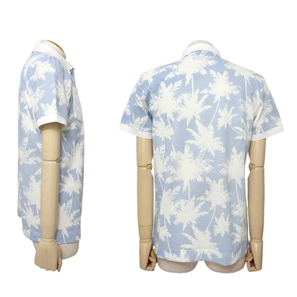 オリジナルのパームツリー柄を全面にプリントで表現した半袖ポロシャツです。