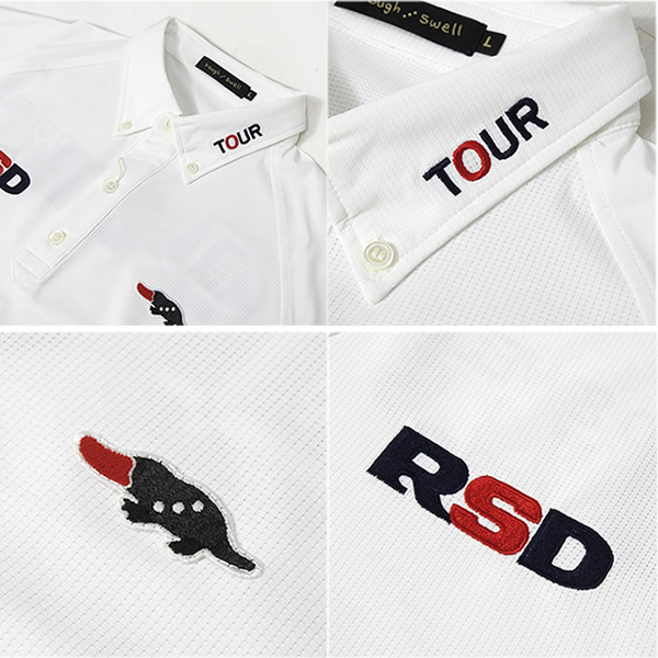 左袖にはハーヴィー・ペニックの名言、TAKE DEAD AIM(狙いにだけ完全に集中しなさい)の文字を刺繍でデザイン。パターを打つ前に1度確認してみては?!