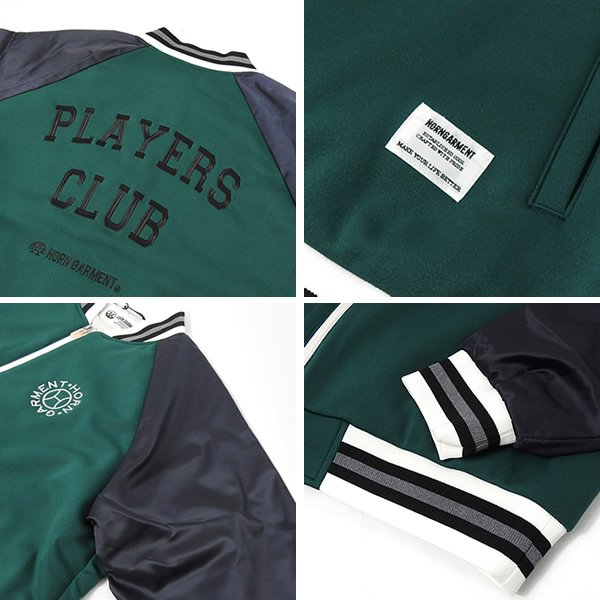 胸にサークルマーク刺繍を、バックにはブランドロゴの刺繍を施した、HORN GARMENT PLAYERS CLUBデザイン。