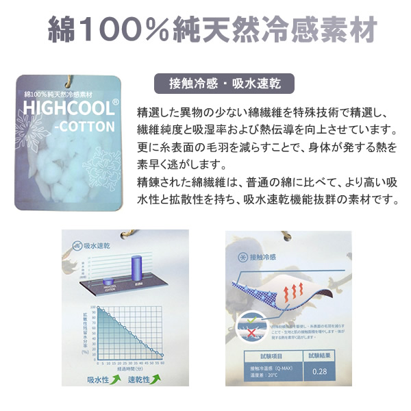 ・接触冷感、吸水速乾<機能素材“HIGHCOOL COTTON”>