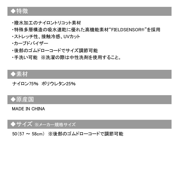 高機能素材フィールドセンサーを採用した超撥水キャップです。