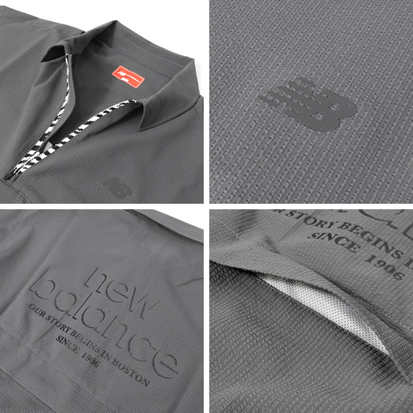 背面はブランドロゴをプリントし、後ろ姿まで抜かりない仕上がり。左胸はお馴染みの「NB」ロゴをプリントでレイアウト。 ゼブラ柄にデザインしたハーフジップがさり気なくアクセントを効かせています。