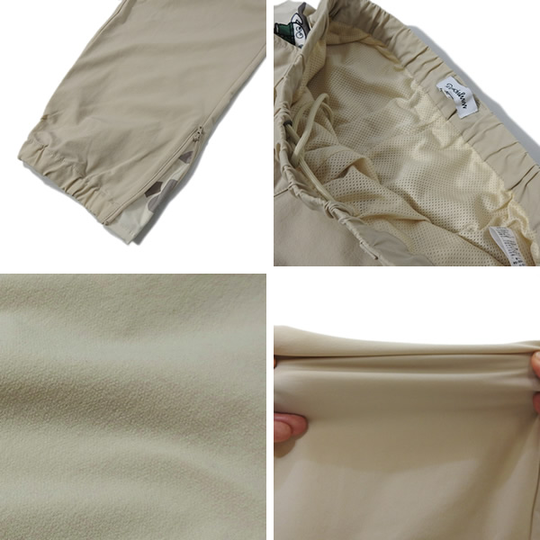 表地は伸縮性の高いポリウレタン混紡ナイロン生地のジャージ素材を採用。しっかりストレッチが効いた、しなやかに伸びる肌触りの良い生地感です。 裏地は、太腿辺りまでポリエステルメッシュ素材を使用し、通気性も確保でき涼しげな穿き心地です。
